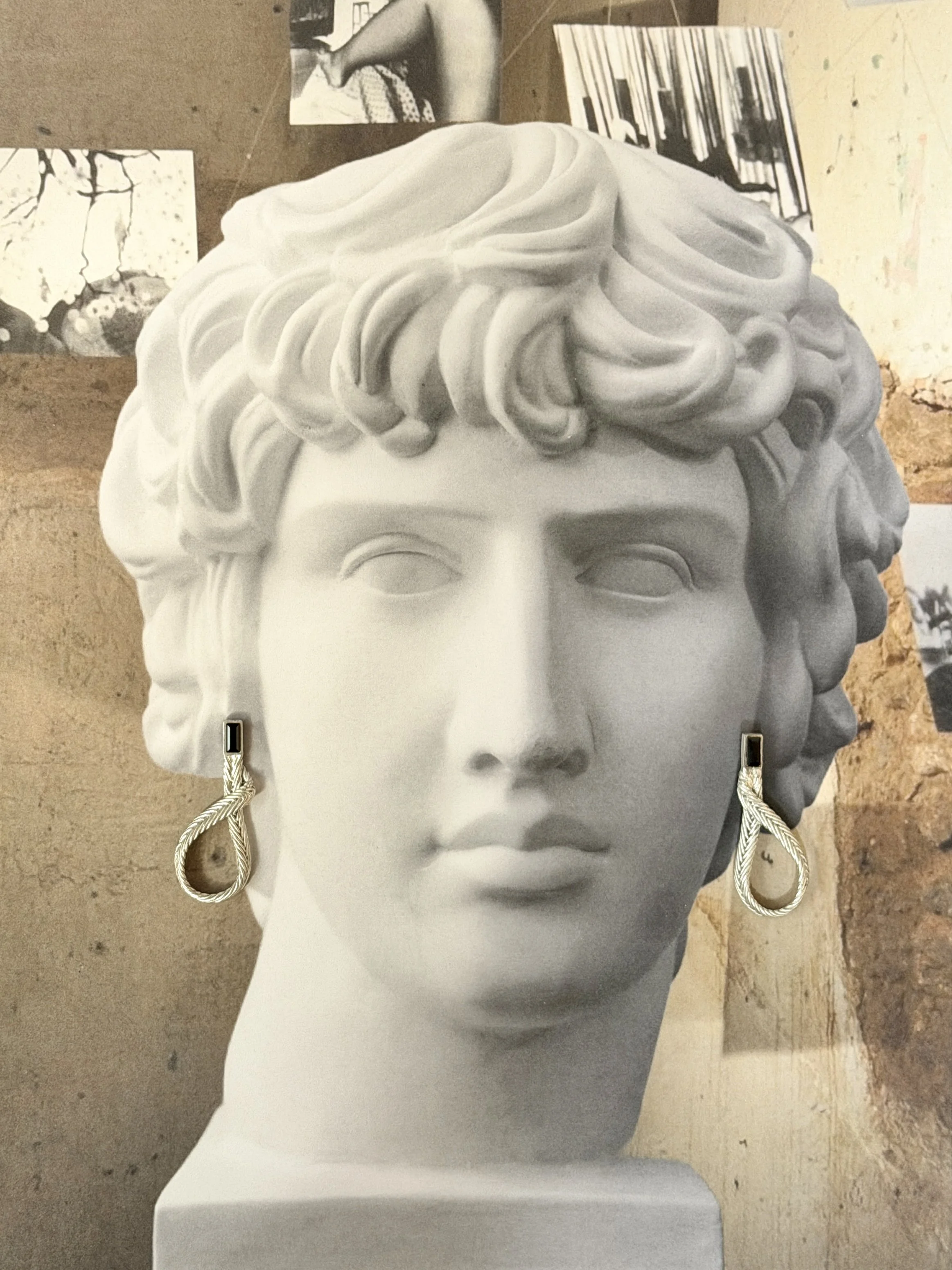 The posts carry natural black spinel stone, and can be worn alone or with the woven hoops. Pair the woven hoop jackets with just about any of your favorite post earrings.